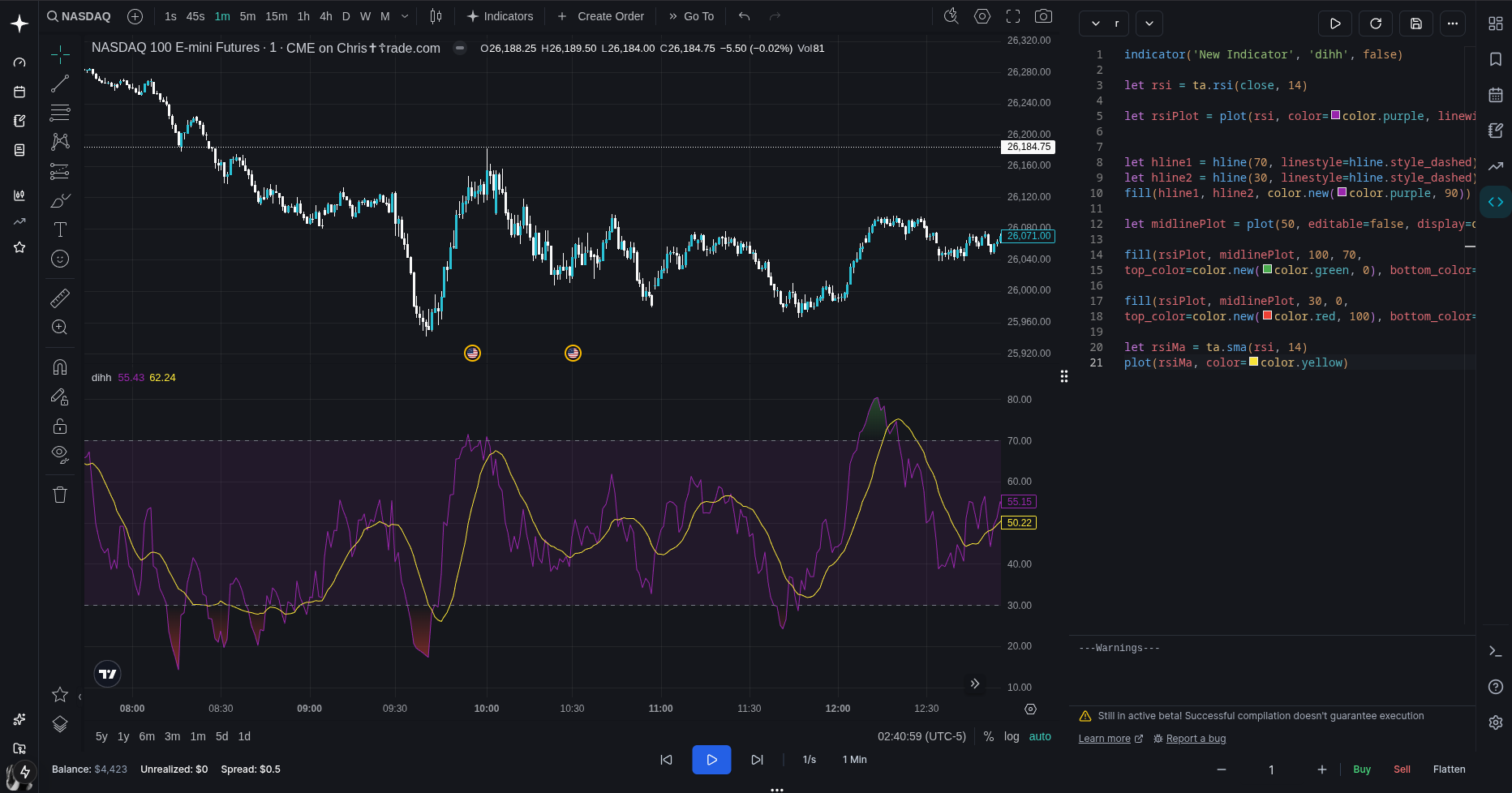 anyways, let's add a simple rsi line: